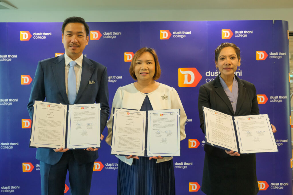 El 22 de marzo de 2024, Dusit Thani College Tailandia, institución líder en el campo de la educación en negocios hoteleros, dedicada a la internacionalización liderada por la Dra. Praweena Kasai, Vicerrectora de Asuntos Estudiantiles, firmó un memorando de entendimiento con dos organizaciones: ProtocolToday, especializada en protocolo internacional y cooperación empresarial internacional, y The Diplomat Network, expertos en la realización de actividades internacionales, diplomacia y atención meticulosa a invitados VIP con habilidades de servicio global. El objetivo es que las tres organizaciones intercambien y se beneficien mutuamente del aprendizaje de habilidades y experiencias valiosas. Además, esto abre oportunidades para que los estudiantes de Dusit Thani College se capaciten en habilidades interpersonales y de comunicación, fomentando su desarrollo como personal de calidad para la industria de servicios tanto a nivel nacional como internacional.