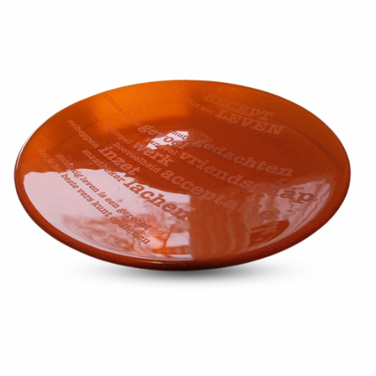 Glass bowl with sandblasted text (a recipe for life)